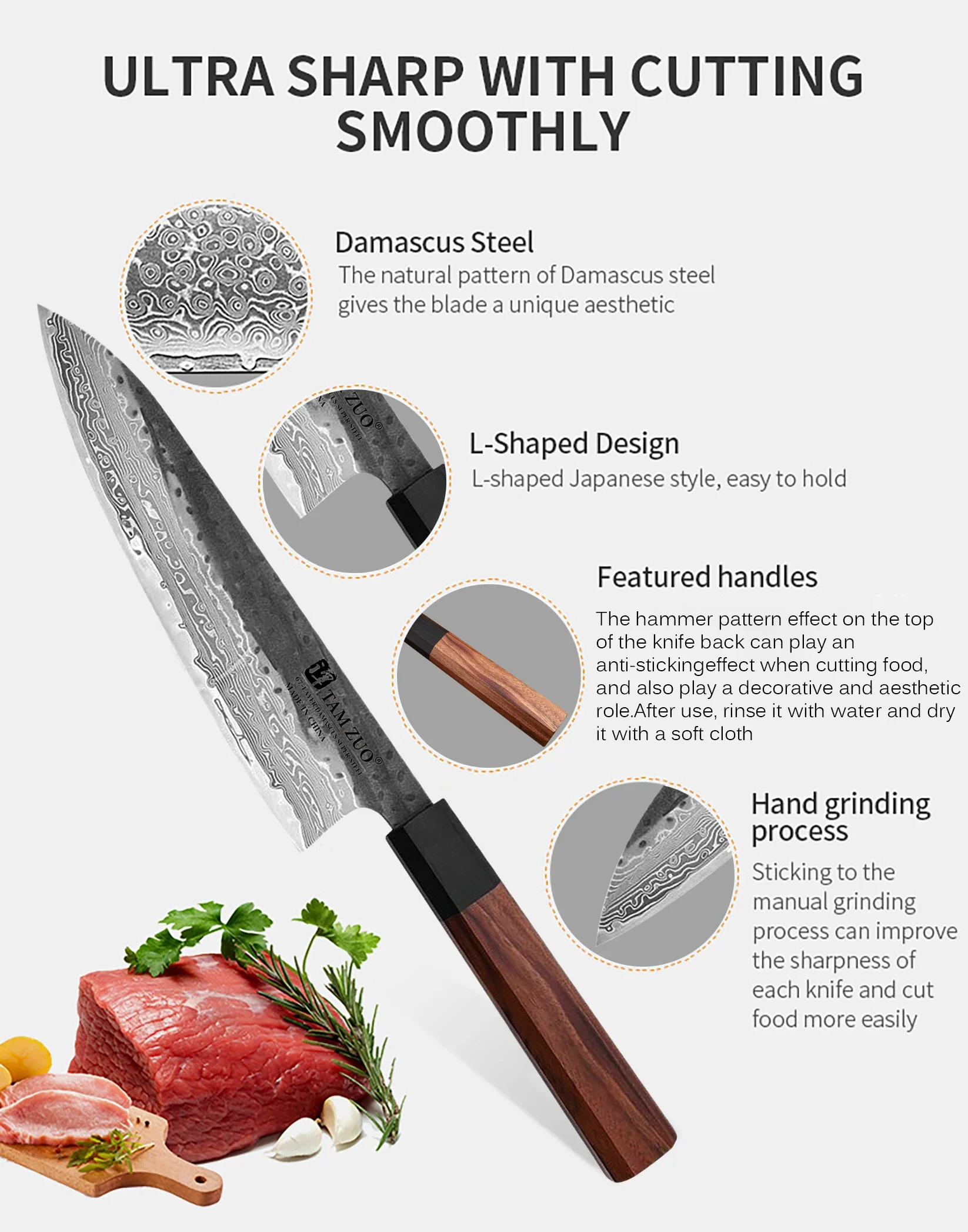Exterior features: sharp and durable, super rustproof, optical sharpness